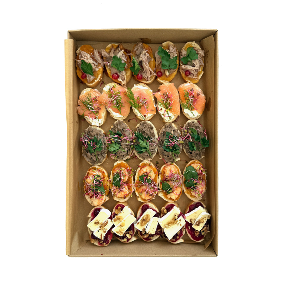 Zestaw idealnie wpisuje się w formę finger food, dlatego świetnie sprawdza się podczas spotkań w stylu bufetowym. Co więcej, mini format sprawia, że każda porcja jest wygodna do spożycia, a jednocześnie pozwala spróbować różnych kompozycji smakowych. Mini Sandwich Box 4 to doskonałe rozwiązanie dla osób, które chcą podać elegancki i różnorodny poczęstunek bez zbędnego przygotowania.
